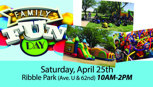 • Family Fun Day in the Park...Make sure you join us at Ribble Park (Ave. U and 62nd) on Saturday, April 25th from 10AM-2PM. We will have games, jumpies for the kids, food, music, and lots of fun! Everyone is invited, so tell a friend.
